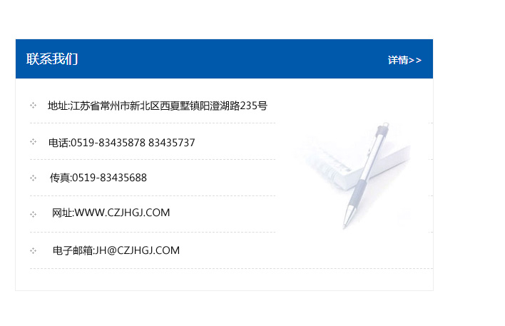 傳真:0519-83435688    郵編:213135    網址:WWW.czjhgj_com.sdzuifeng.com    電子郵箱:JH@czjhgj_com.sdzuifeng.com